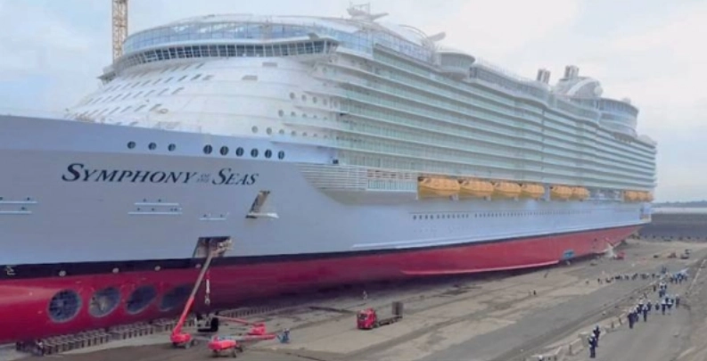 Один из самых больших круизных лайнеров в мире. Обратите внимание на грузовик снизу для понимания масштабов
