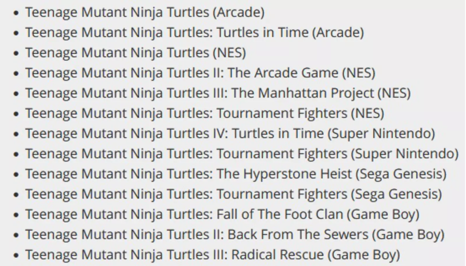 Японская компания Konami анонсировала коллекцию игр про черепашек-ниндзя The Cowabunga Collection, которая включает много классических игр с восьмибитных и шестнадцатибитных консолей прошлого столетия.