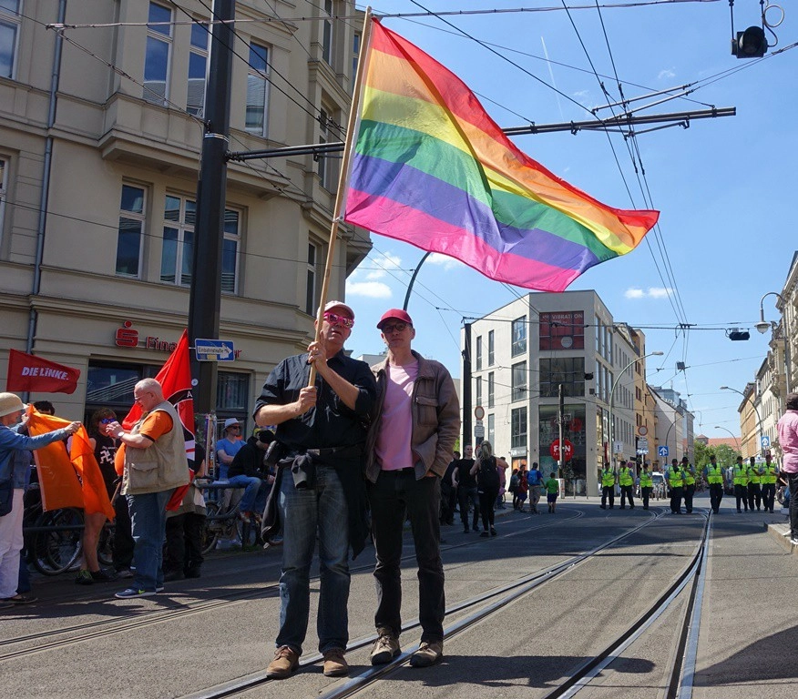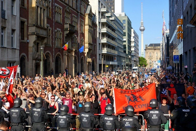В 13 часов по местному времени со станции Hackescher Markt стартовало шествие «антифа», организованное и Евангелической церковью, и примкнувших к ним «новых левых» группировок — от радикальных экологов и «красных» скинхедов до ЛГБТ.