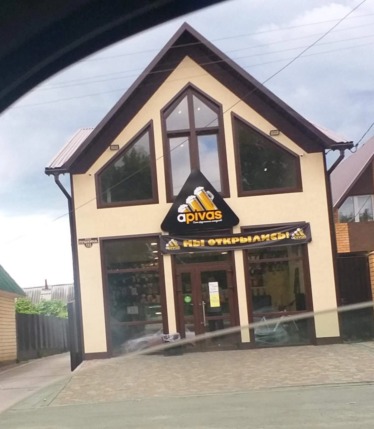 А это классика из алкомаркетов. У таких заведений вывески и названия одни из самых оригинальных.