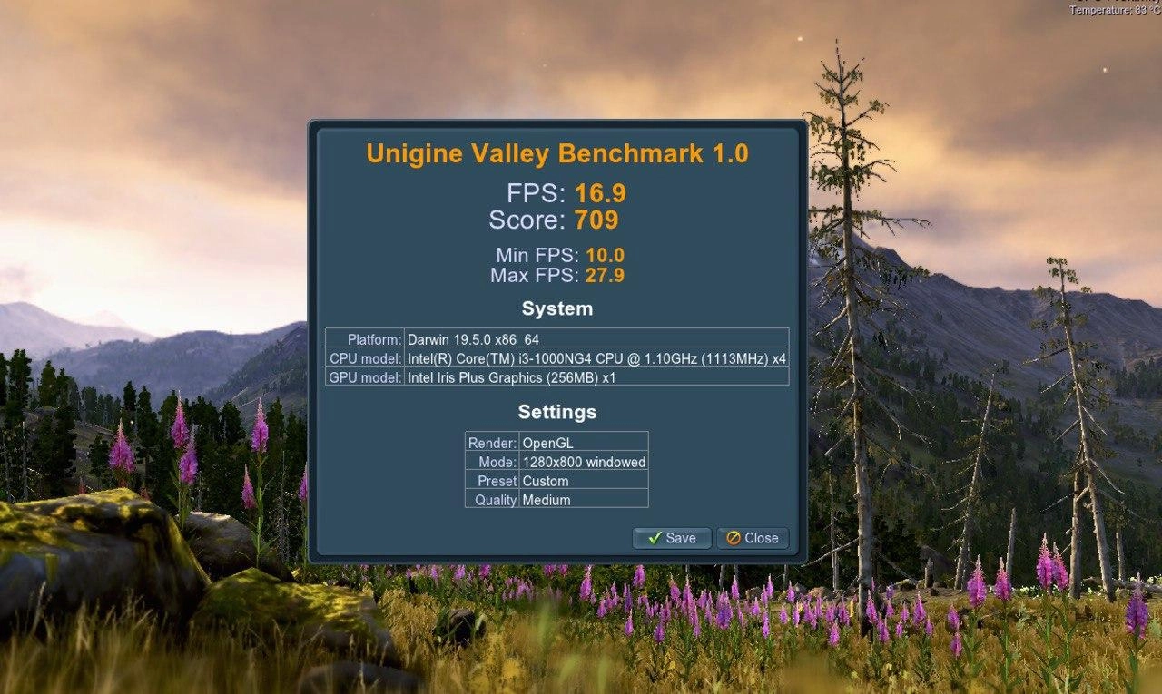 В графическом бенчмарке Valley у Apple MacBook Air 2020 средний показатель fps составляет 16,9. Но, опять же, отмечу, что это не игровая машина.