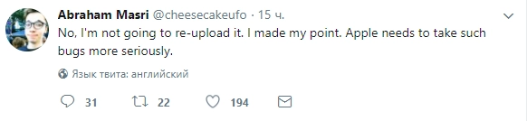 В последнем посте Абрахам Масри сообщил, что Apple должна серьезнее подходить к решению таких проблем. Его пост поддержало большое количество подписчиков.