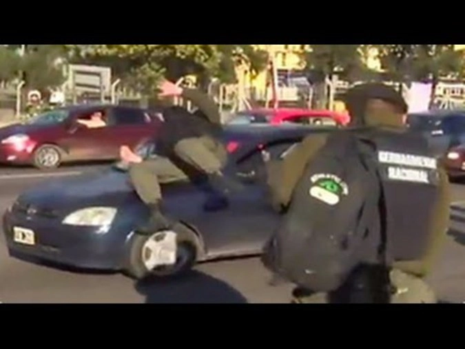 Аргентинский полицейский запрыгнул на капот автомобиля и арестовал водителя