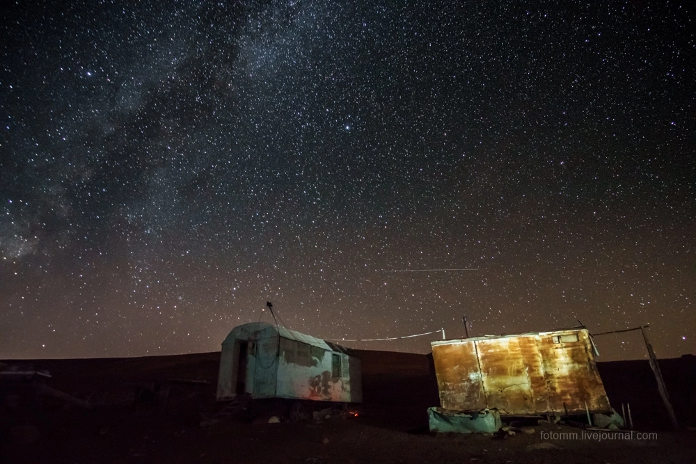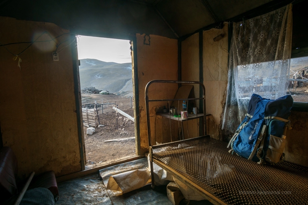 И вот тут мне повезло. Чуть в стороне от дороги заброшенная кошара, какие то постройки и строительный вагончик — мой отель «тысячи звезд» на ближайшую ночь.