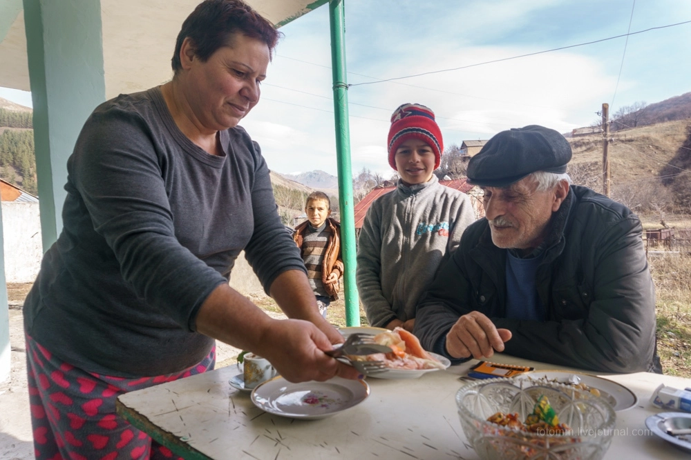Часа через два дошел до селения. На улице никого, но вскоре встретил местного дядьку, который позвал меня на чай.