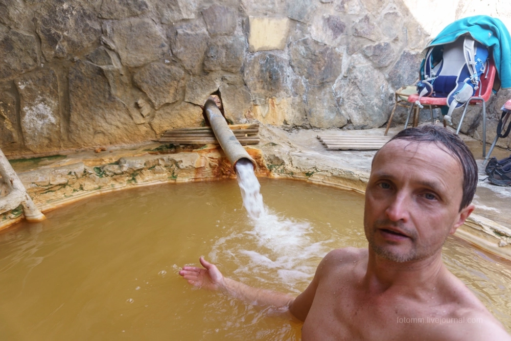 Ну, где чай, там и завтрак, хозяйка быстро сообразила. Дети пытались понять, о чем толкует их дед с пришельцем на незнакомом языке. Хозяин подсказал где тут горячие источники. Побеседовали, я подкрепился и пошел их искать.
