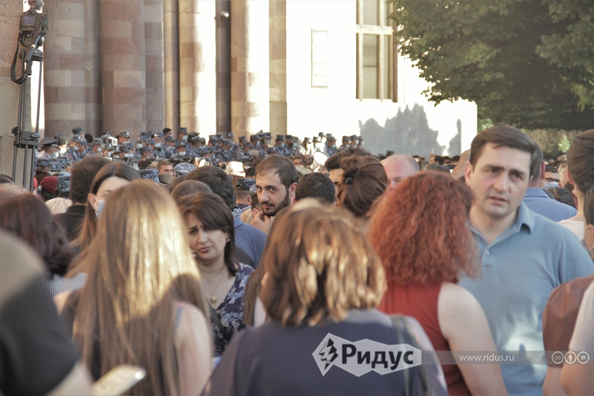 К восьми вечера акция протеста в Ереване достигла своего пика, на площади Республики бурлили три-четыре тысячи голосов. Однако сторонники оппозиционных политических партий к митингу так и не присоединились. Некоторые активисты призывали всех пойти к стенам парламента, но в итоге с наступлением темноты толпа начала редеть.