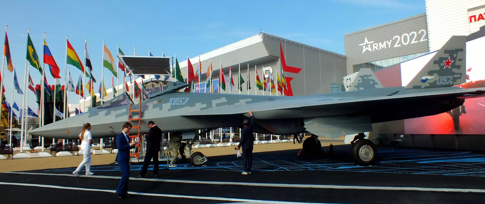 Изюминкой этого года стала демонстрация авиационного комплекса пятого поколения Су-57 в непосредственной близости от здания КВЦ «Патриот».