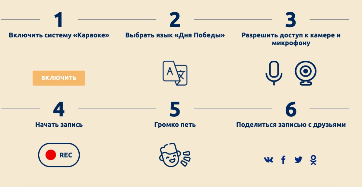 Российские артисты пригласили россиян к участию в онлайн-акции «День Победы на разных языках». По инициативе «Единой России» на портале «Диктант Победы» был запущен специальный сервис с функцией караоке на языках народов России и стран мира, который поможет исполнить легендарный гимн Победы.