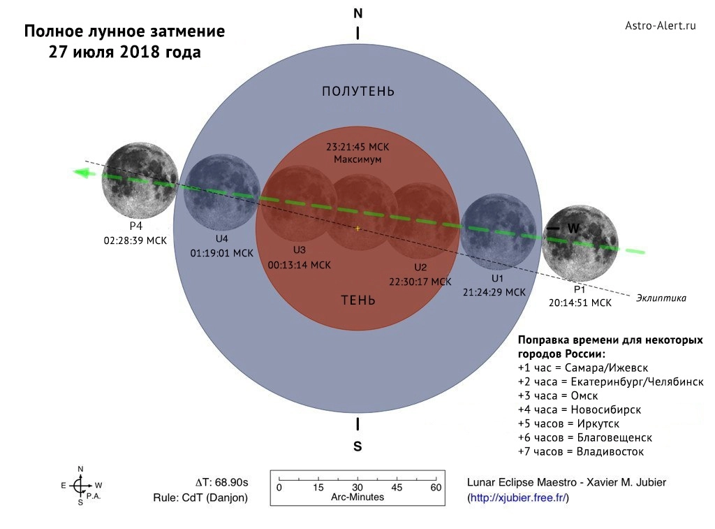 Напомним, что сегодня примерно в 20:00 по московскому времени уже будут заметны полутеневые фазы лунного затмения. Полное затмение состоится в 23:22 по московскому времени и продлится до 02:29 следующего дня.
