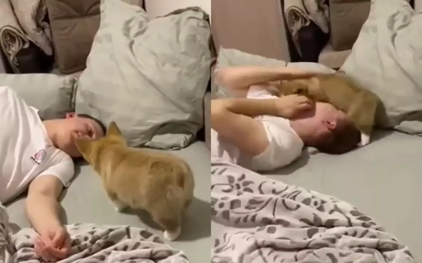 Если вы не знали, как выглядит атака милотой, посмотрите это видео с корги, который напал на хозяина, пока он мирно лежал в кровати. Пушистый малыш осторожно подкрался к человеку как настоящий матерый хищник, а потом напрыгнул на него.