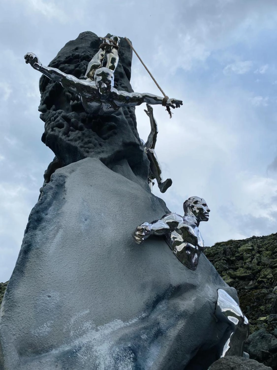 По словам скульптора, ему с командой пришлось везти с собой до самого перевала огромный груз — «4-метровую скульптуру, инструмент, цемент, металлический каркас — основание, созданный из досок на саморезах настил и пару коробок с разобранными элементами скульптуры».