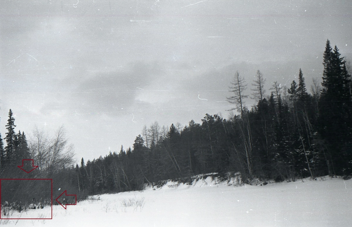 Вы знаете, что после гибели группы Игоря Дятлова остались фотопленки с большим количеством фотографий. Все они, более или менее, изучены и описаны. Ещё два года назад, я обнаружил фотографию из похода 1959 года. На одном снимке, сделанном в русле реки Ауспия, видимо в самом конце января 1959 года, кто-то из туристов сделал панорамный снимок.