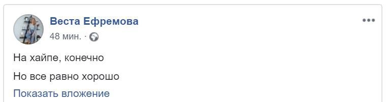 «Вот это я понимаю поддержка! Молодцы! Так держать! Любимая авиакомпания! А теперь еще больший повод для гордости!» — восхитился Антон Иванов. «Не мог пройти мимо. Очень крутая инициатива, которая вызывает огромное количество уважения!» — посчитал Александр Чусов. «Отличный пиар-ход», — оценила Татьяна Зверева.
