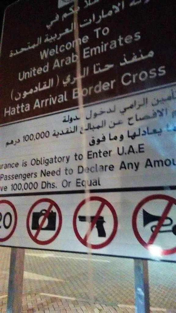 Затем переезжаем на эмиратскую сторону границы и там водитель обьявил аж через микрофон, что просьба ничего не фотографировать. Разве что сделал через стекло автобуса фотку такого содержания —