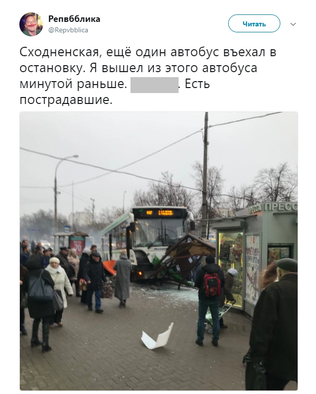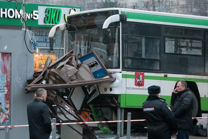 Автобус врезался в остановку в Москве