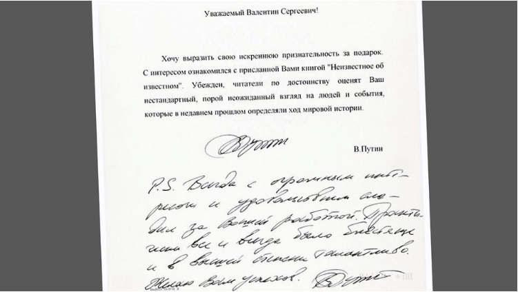Личный автограф президента России Владимира Путина был продан на столичном аукционе за 340 тысяч рублей. Глава государства адресовал свое послание американисту Валентину Зорину, в котором президент благодарил его за подаренную книгу «Неизвестное об известном».