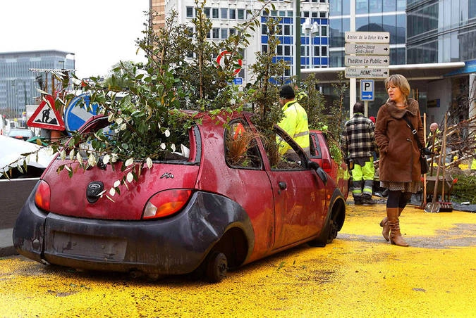 Автомобиль Ford, засаженный растениями в брюссельском районе Маду, который скоро станет пешеходной зоной. © Francois Lenoir/Reuters