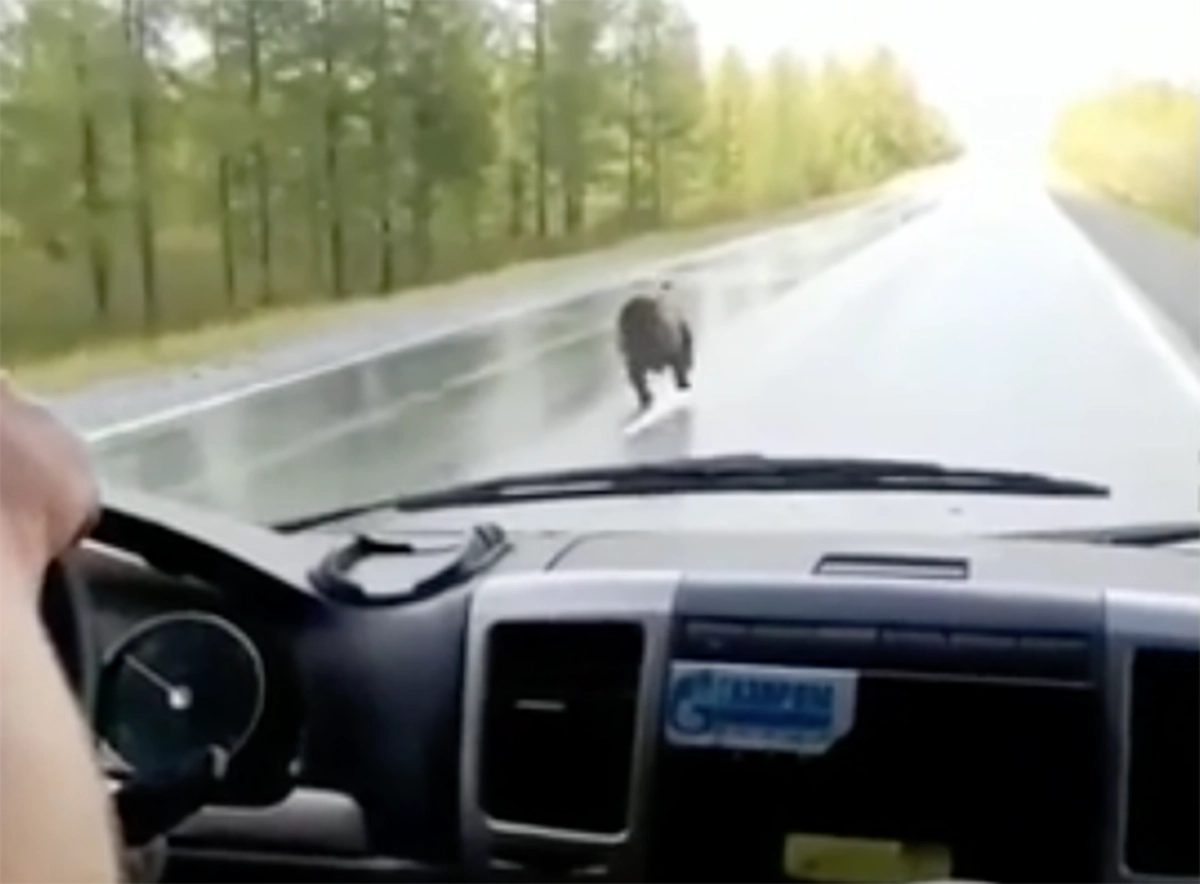 Житель Ямало-Ненецкого автономного округа Евгений Груздев опубликовал в интернете запись погони за бурым медведем, случившейся на автодороге неподалеку от Надыма.