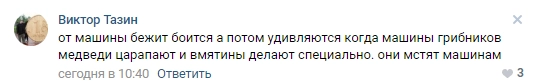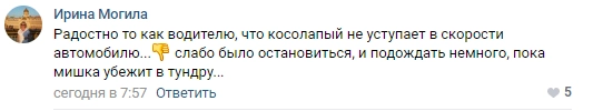 Комментаторы в социальных сетях сочувствуют животному, которое, по их мнению, было напугано приближающейся машиной. Некоторые пользователи были недовольны водителем, считая, что тот нарочно решил погонять медведя по трассе.