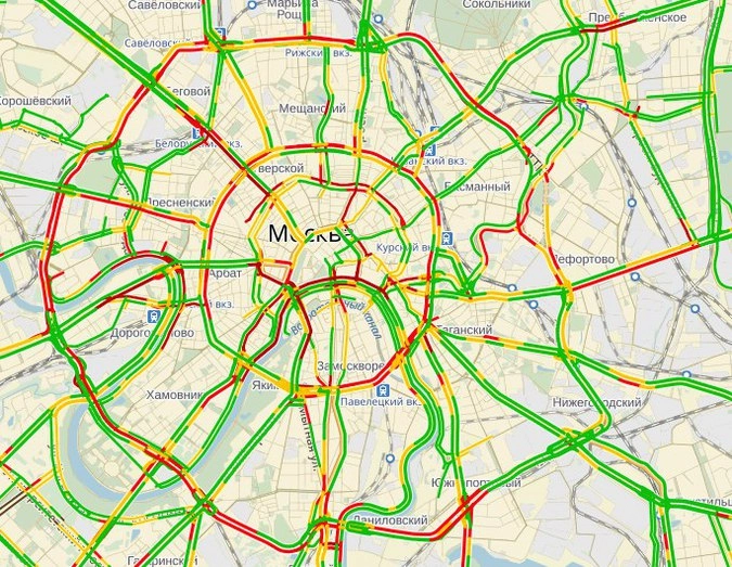 Самые большие заторы образовались на МКАД и Третьем транспортном кольце.