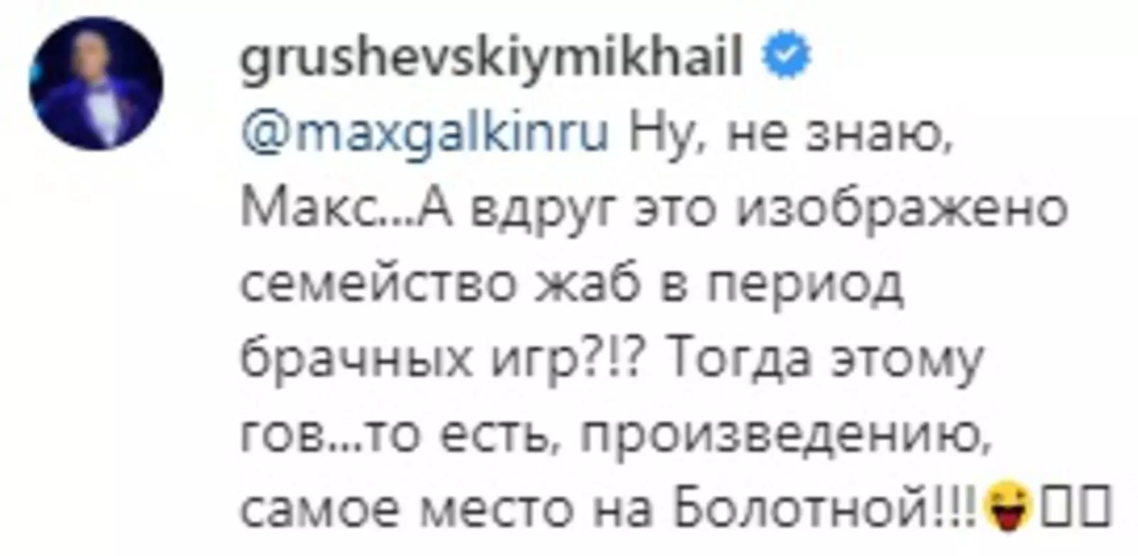 В комментариях у Максима Галкина другие знаменитости тоже сообщали, что работа Фишера их, мягко говоря, не впечатлила или впечатлила со знаком минус. Среди недоброжелателей «Большой глины» оказались его коллеги Михаил Грушевский и Елена Воробей, музыкант Денис Клявер и другие.