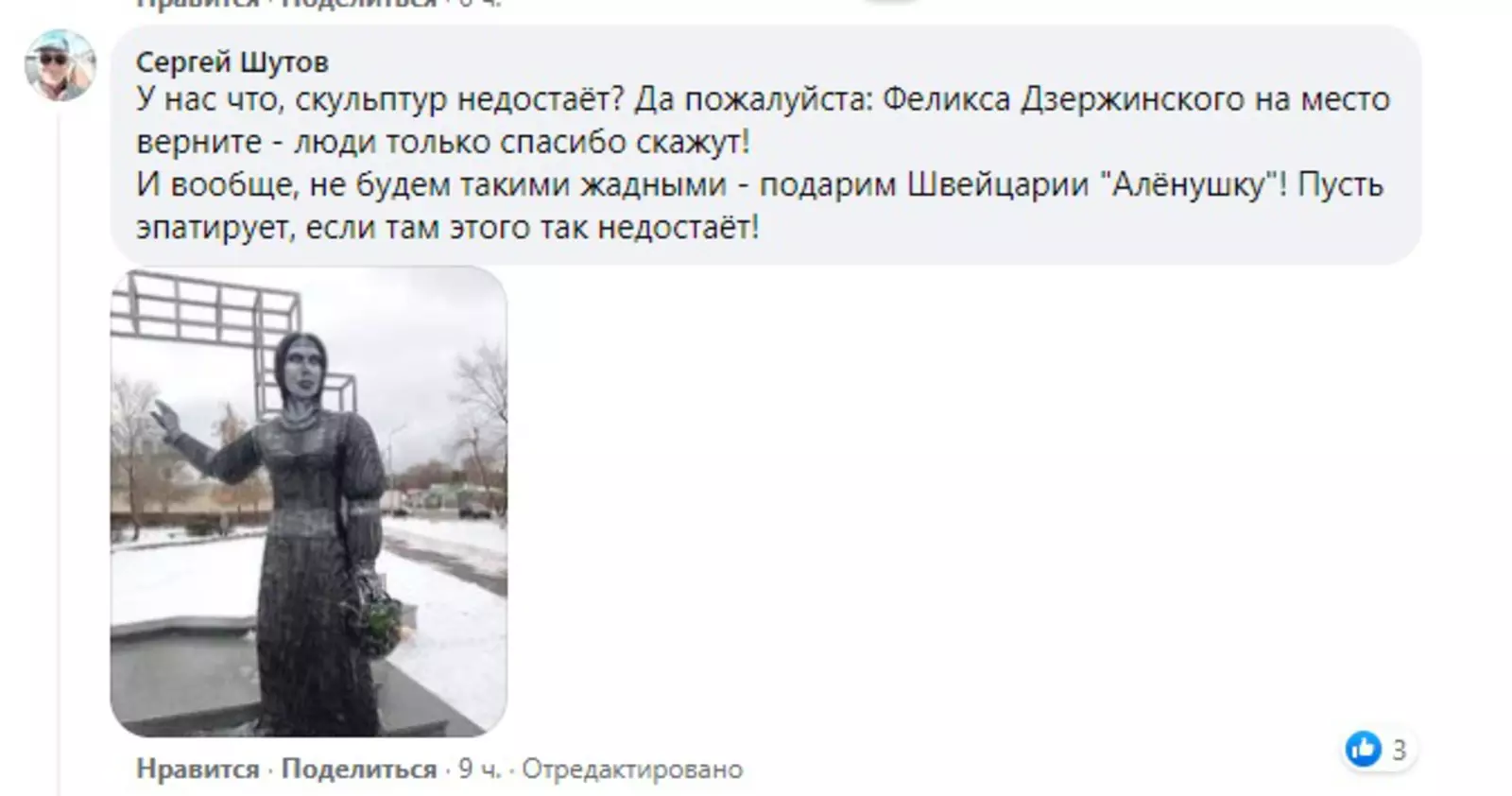 Обычные москвичи тоже были не в восторге от планов фонда Михельсона водрузить на набережной «Большую глину № 4». Произведение Фишера сравнивали не только с экскрементами, но и с устрашающей скульптурой «Аленки» из Воронежской области, успевшей стать мемом.