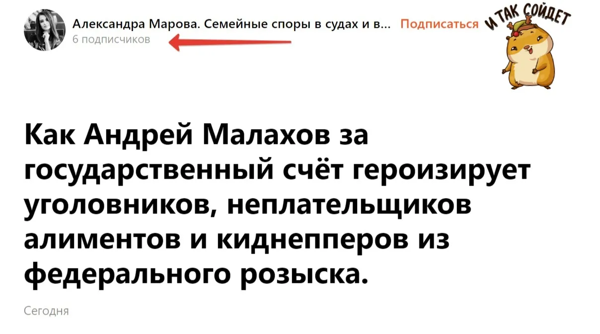 Первой на выпуск отреагировала генеральный директор «Защитников детства» Александра Марова. В ее «Дзен»-канале, который еще недавно читали всего шесть человек, одна за другой стали выходить статьи о профессиональных качествах Андрея Малахова.