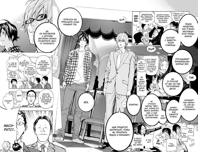К чести создателей этой манги (а это Цугуми Ооба и Такэси Обата, в настоящее время, надо думать, считающие дни до премьеры американской экранизации их культовой «Тетради смерти»), они неизменно находят «крючки», позволяющие им удерживать своего читателя. Ведь героям мало начать сериал — для того, чтобы его не закрыли, необходимо прикладывать усилия особого толка; и авторы, как и в предыдущих книгах данного цикла, подробно объясняют «кухню» японской манга-индустрии.