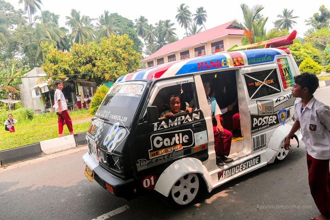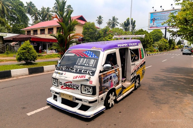 На каких только колымагах нам не приходилось ехать, пересекая Суматру с запада на восток.