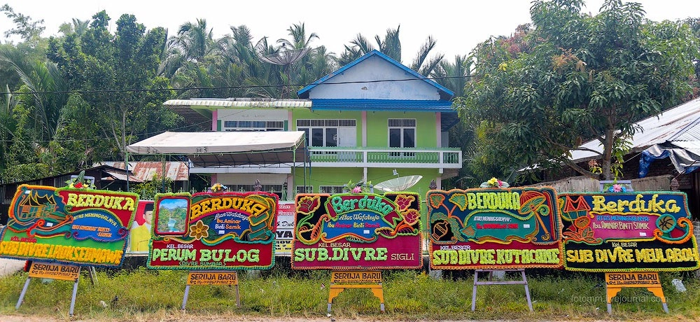 Проходя через деревню у дороги видим яркие разноцветные панно. Подходим ближе, оказывается эти картины выложены из настоящих цветов. Это просто реклама. Только у нас рекламу печатают на широкоформатных принтерах, а здесь выкладывают вручную из цветов.