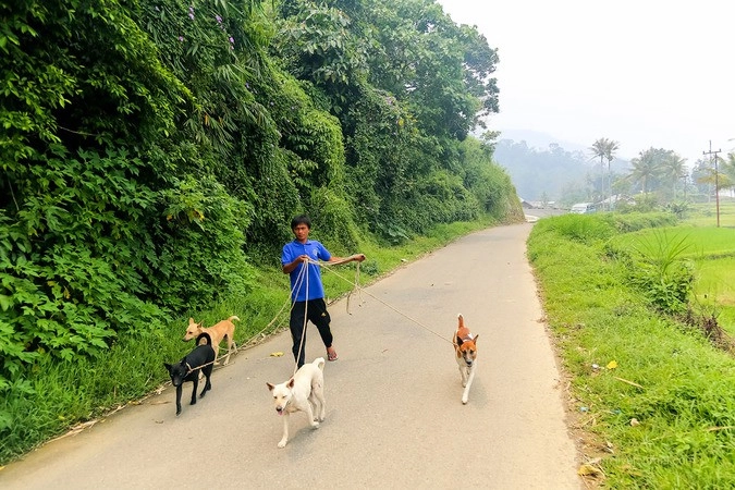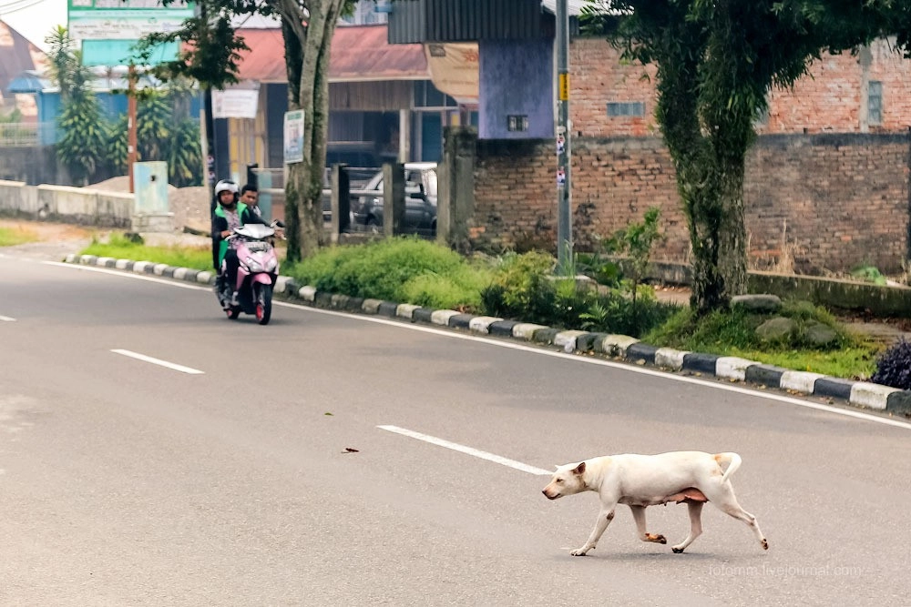 На Суматре даже собаки немного другие, видимо какая то местная порода. Сначала попадались бездомные.