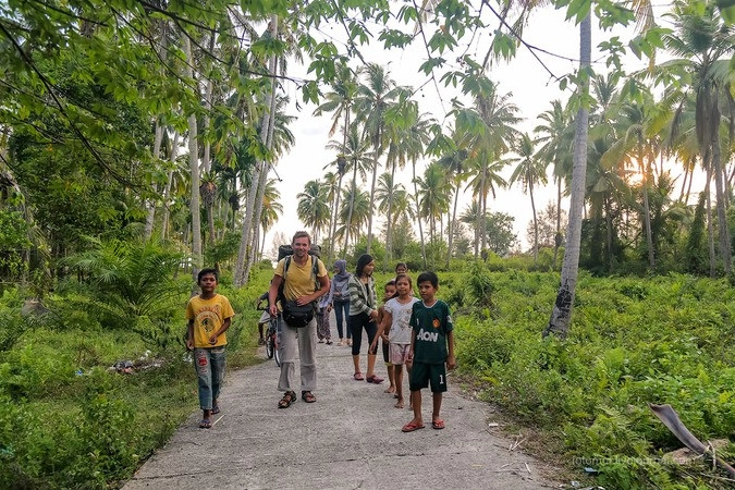 Ну п потом мы с Лехой двигались куда нибудь в сторону побережья, чтобы найти место для ночевки. Деревенские сопровождают нас покуда у нас хватает терпения не прогнать их.