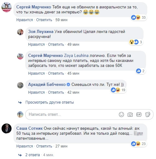 Бабченко запросил три миллиона рублей за интервью