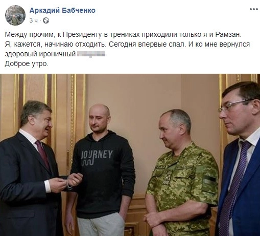 Также Бабченко сообщил, что недавно к нему вернулся сон и он впервые отдохнул.