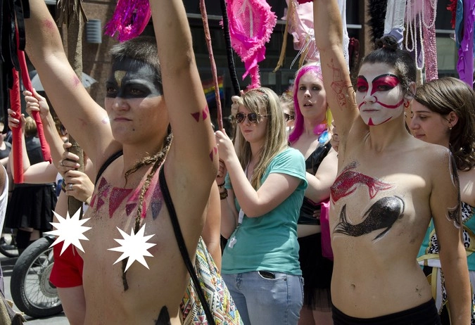 Для себя же «радфемы» требуют полной свободы самовыражения. Выставлять напоказ все интимные сферы — это правильно, это «бодипозитив». В Нью-Йорке, Сан-Франциско, Торонто регулярно устраиваются марши женщин топлес — они требуют от городских властей разрешить ходить им в таком виде по улицам. Типа, мужчинам можно, а нам нельзя?