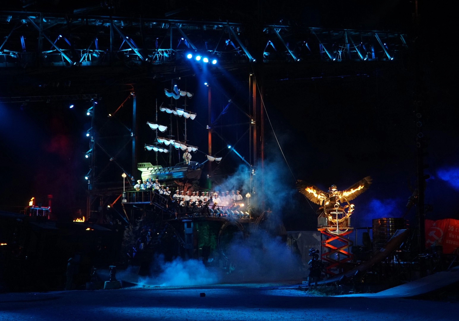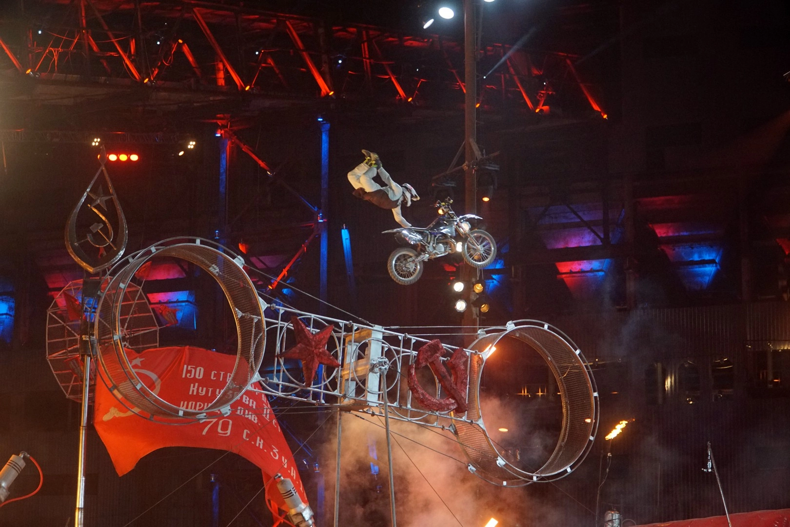 Каскадерские трюки, мотофристайл, летающие черепа, огненные барабанщики, пиротехнические спецэффекты, парад военной и ретро техники и качественное музыкальное сопровождение оставили у зрителя массу ярких впечатлений.