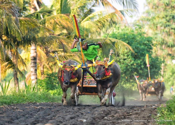 Сегодня мы побываем на очень необычном заезде в деревне Джембрана на западе острова Бали. Макепунг – это гонки на колеснице запряженной двумя буйволами. Эти традиционные заезды, проводятся несколько раз в год в период с июля по ноябрь в заранее установленных местах.