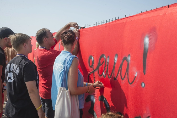 В субботу, 16 августа, участники «Тавриды» организовали акцию, высмеивающую заявление Госдепартамента о том, что «Путин является единственным туристом в Крыму».