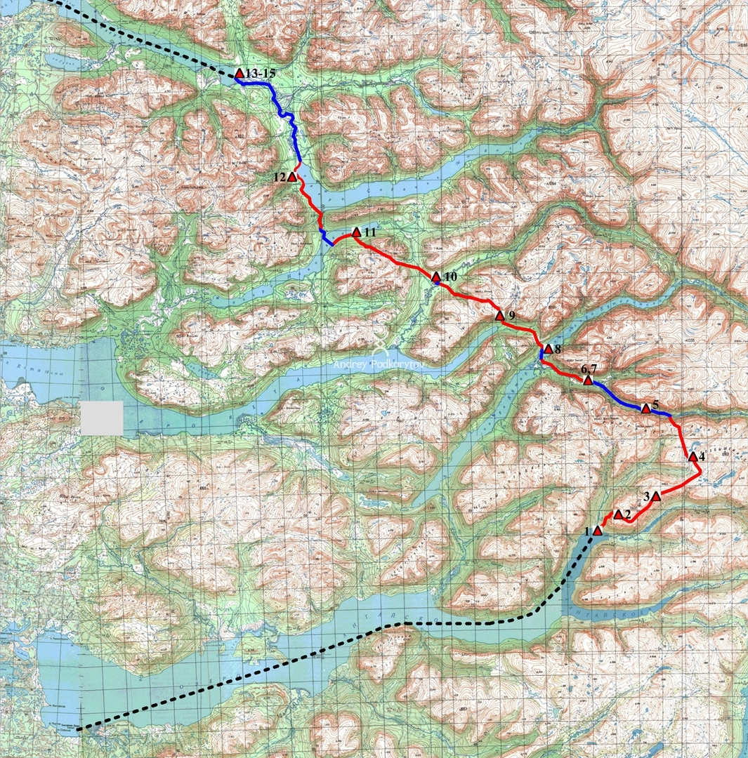 Карта-схема пройдённого маршрута. Плато Путорана.