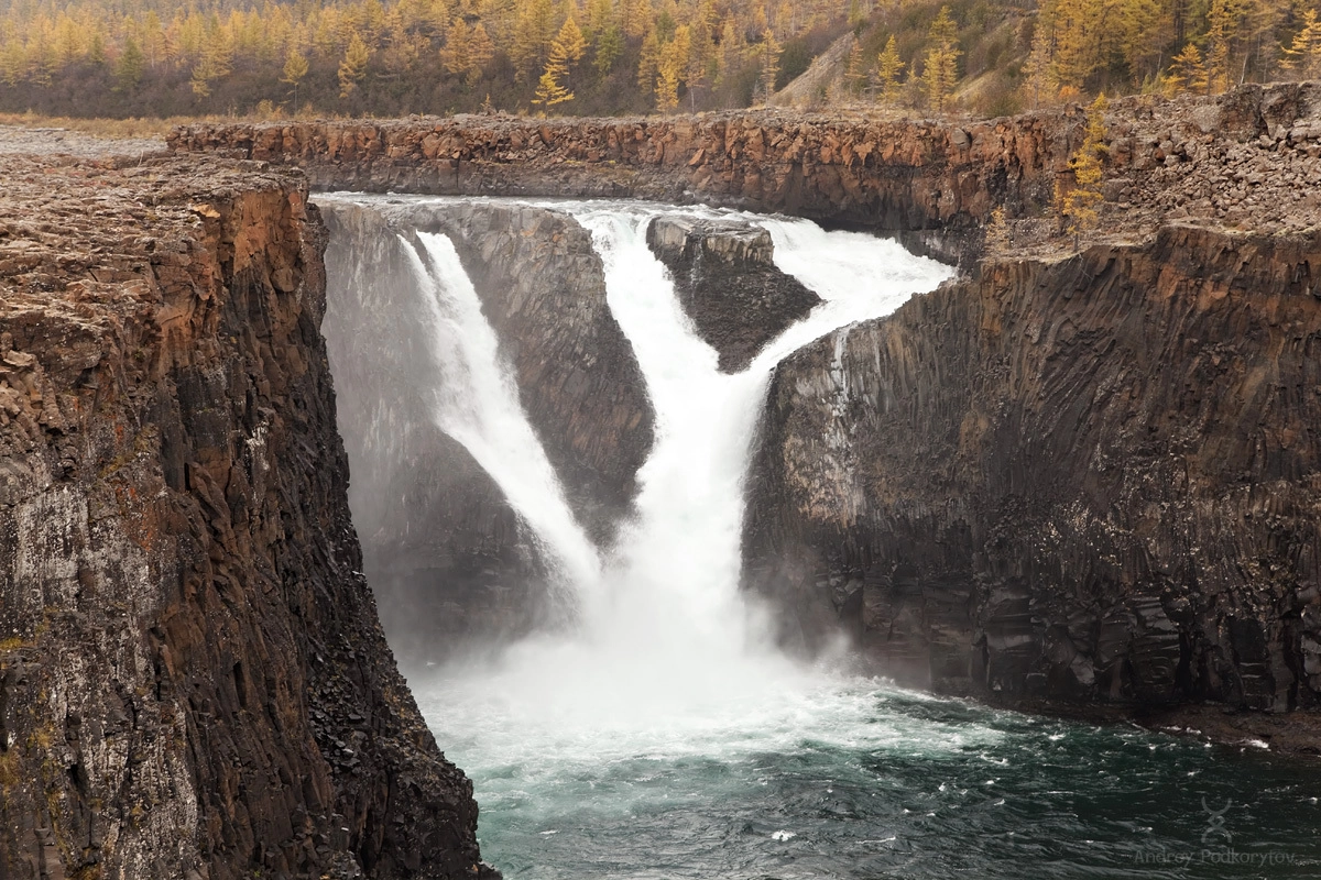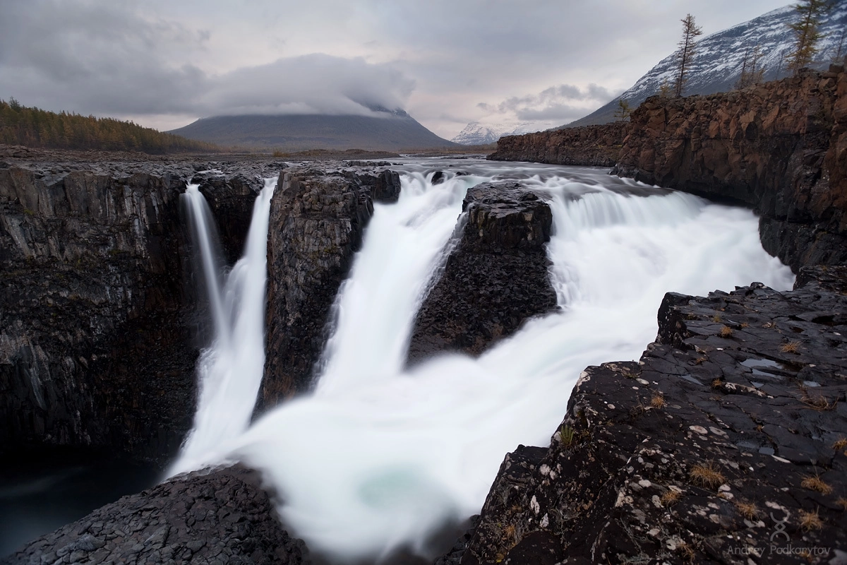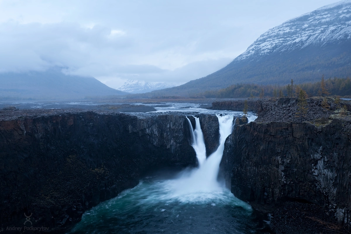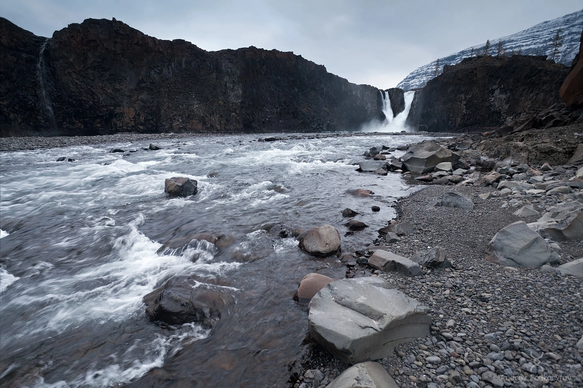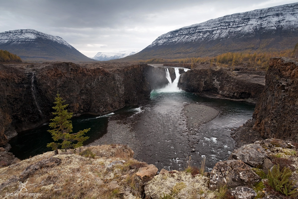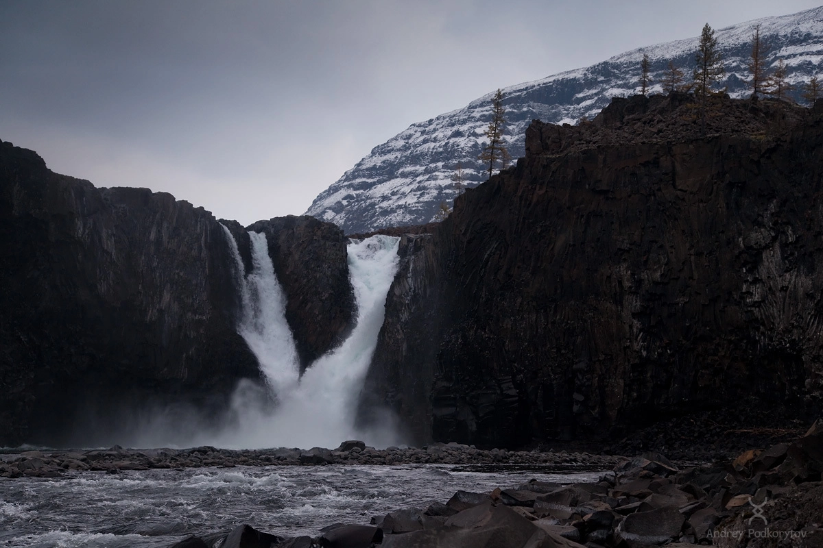 Большой Иркиндинский водопад. Каньон реки Иркинда. Плато Путорана.