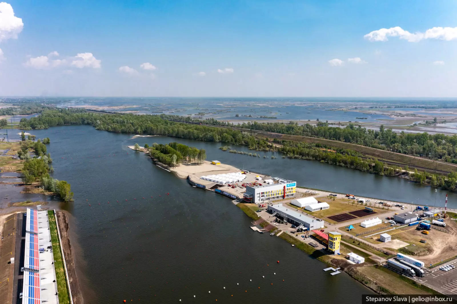 54. Спортивная база по гребле на байдарках и каноэ. С 2017 года на гребном канале Барнаула стали систематически проводится масштабные спортивные соревнования, как российские, так и международные, самым значимым из которых стал второй этап Кубка мира по гребле на байдарках и каноэ в мае 2021 года.