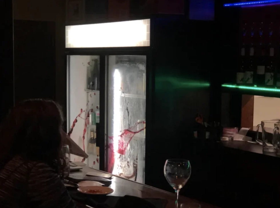 Тем временем напитки в этом баре хранятся в холодильнике, который больше похож на место преступления