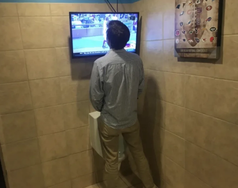 Спортивный бар поставил в туалете одностороннее зеркало Гезелла, которое позволяет не пропустить игру тем, кто вышел облегчиться