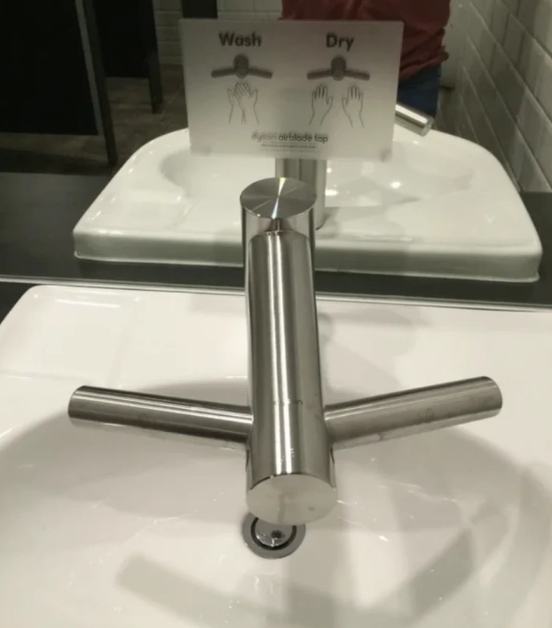 В данном заведении в раковине есть сушилка, встроенная прямо в кран