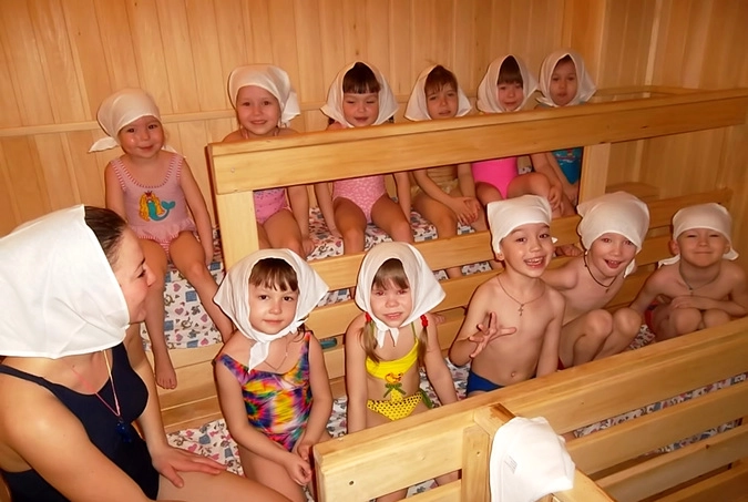 По данным мониторинга состояния здоровья детей, проводимого в детском саду, посещение сауны здоровыми детьми снижает риск возникновения простудных заболеваний на 80%, а также положительным образом сказывается на психике ребенка.