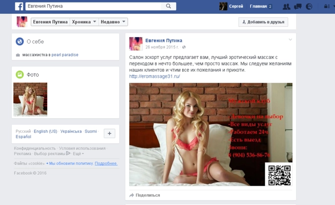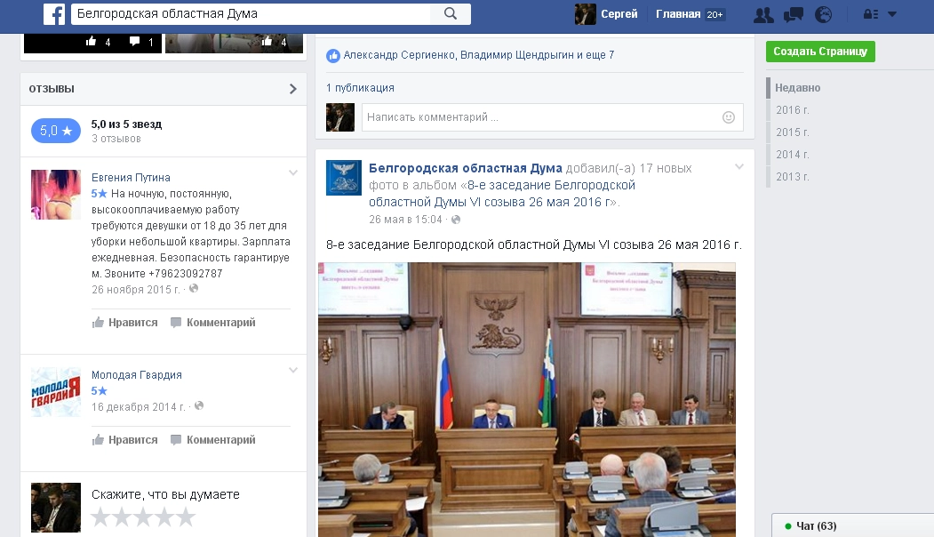 На официальной странице областных парламентариев в Facebook вот уже более полугода красуется отзыв с рекламой интимных услуг, за которые в самом регионе ранее ужесточили ответственность.
