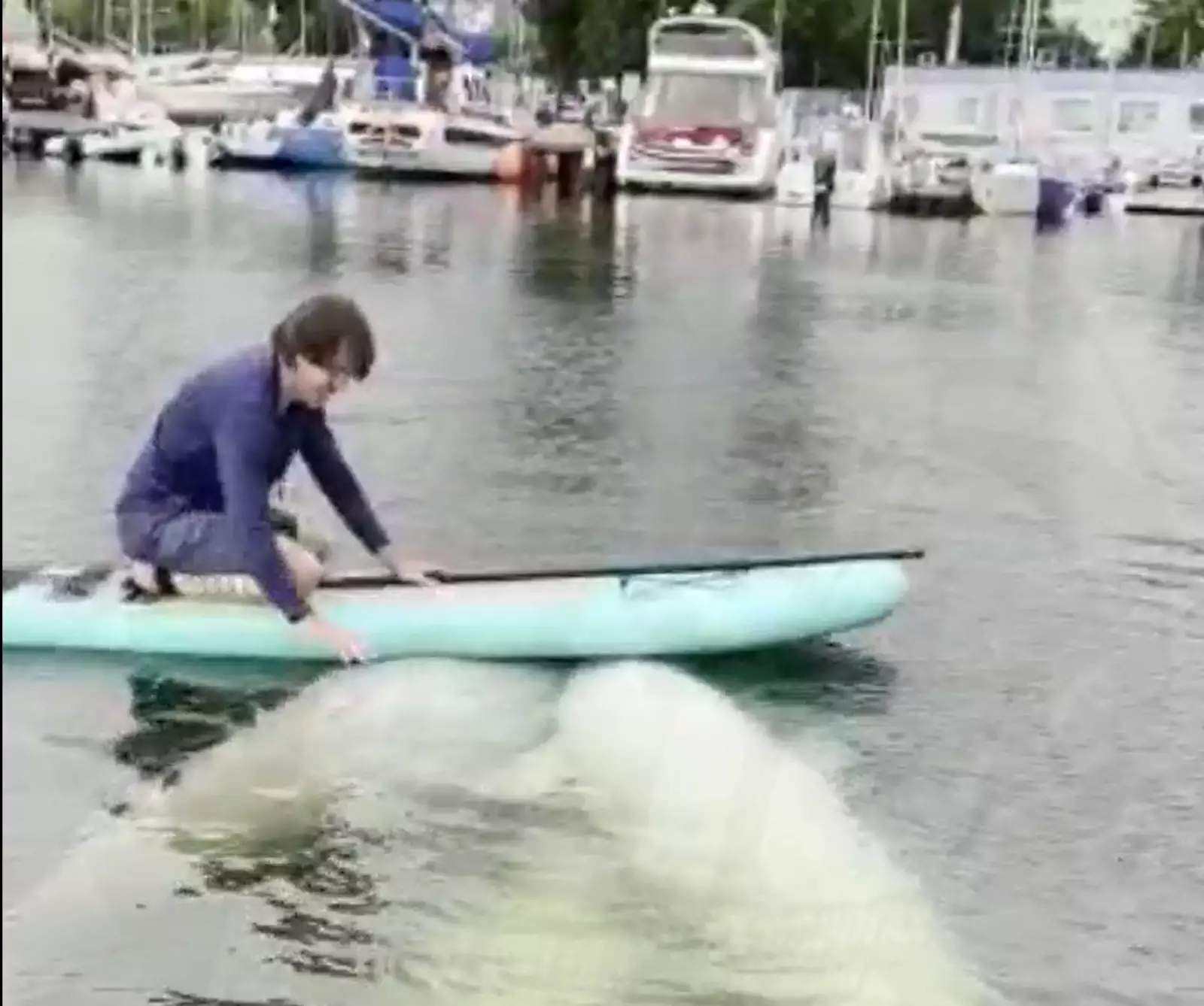 Во Владивостоке у берега яхт-клуба «Семь футов» три белухи регулярно пристают к людям в воде — к катающимся на SAP-досках и к дайверам.