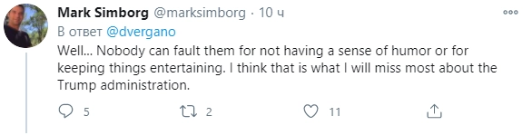 Ну... по крайней мере, никто не может отказать им в чувстве юмора. Это главное, о чем я буду жалеть после Трампа.