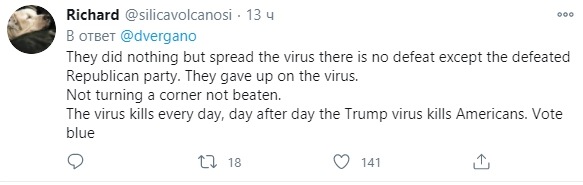 Они ничего не сделали, кроме распространения вируса, поражение потерпела только Республиканская партия. Они забили на вирус, а он убивает американцев каждый день. Голосуй за демократов!
